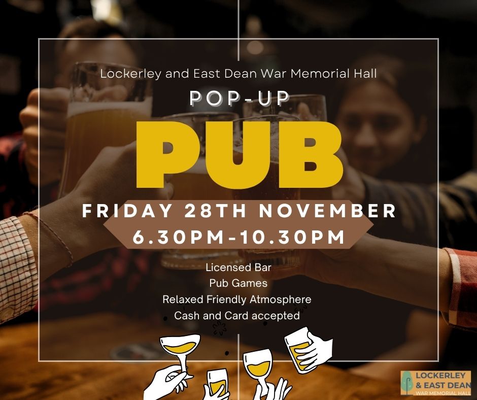 All are welcome to join for the new Pop-Up Pub at Lockerley and East Dean War Memorial Hall on Friday 28 November.
